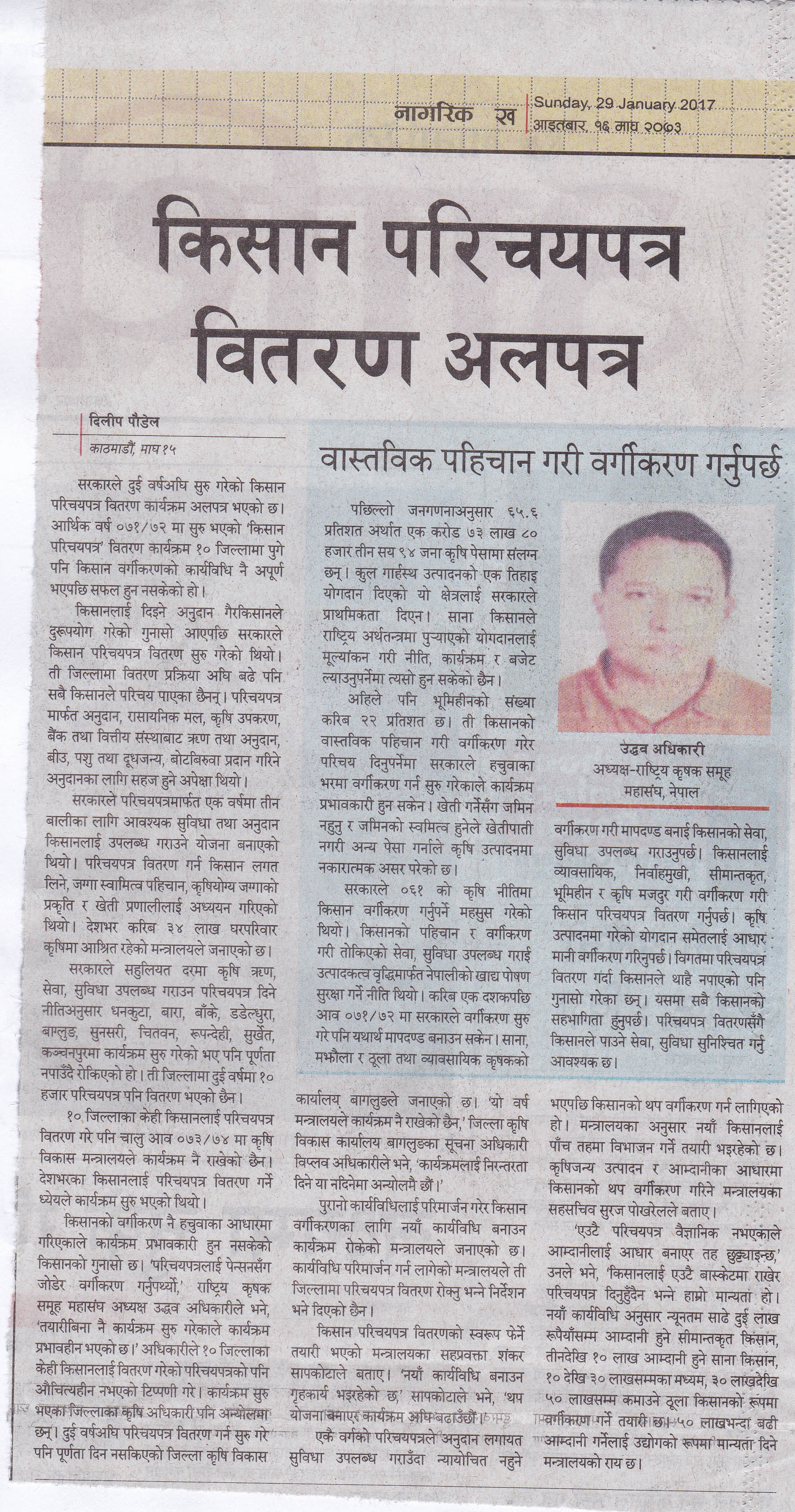 National Farmers Group Federation Nepal has been raising this question since its inception. In particular, it is necessary to increase the contribution of marginalized and deprived farmers in the development of the agriculture sector by establishing the rights of marginalized and deprived farmers and equitable distribution of government services in the agricultural sector. The advocacy activities of the federation for this are as follows.